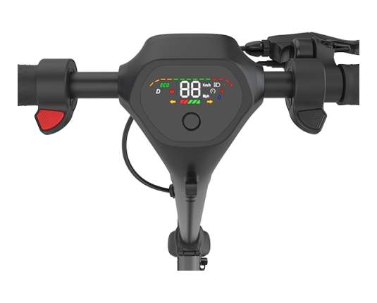 - velik lahko berljiv barvni zaslon prikazuje: hitrost vožnje, stanje napolnjenosti baterije, trenutno porabo baterije ali stopnjo rekuperacije in način vožnje